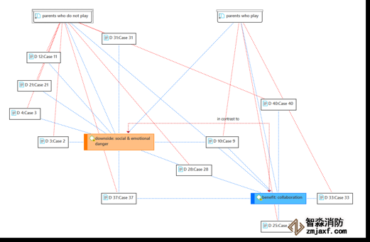 例如,將代碼鄰近添加到文檔節點或文檔組節點允許創建基于案例的網絡。您可以提出以下問題:哪些代碼已應用于哪個文檔(或文檔組)。ATLAS.ti在代碼和它們出現的文檔(文檔組)之間畫了一條藍線。