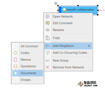 圖12:向ATLAS.ti網絡中的代碼節點添加文檔(Windows和Mac版本9.1)