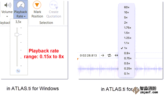 圖16:ATLAS.ti 9.1版Mac Windows中的音頻/視頻播放速率