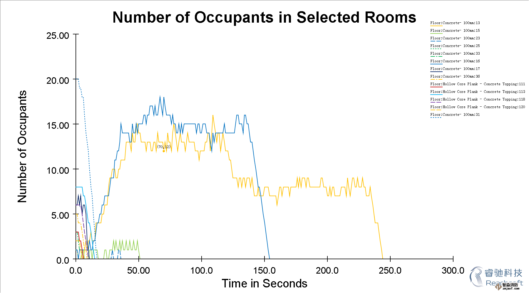 -除了3D模擬視圖,Pathfinder還提供了2D時間關系曲線圖的CSV文件和記錄樓層疏散時間和出入口流通率的文本文件。